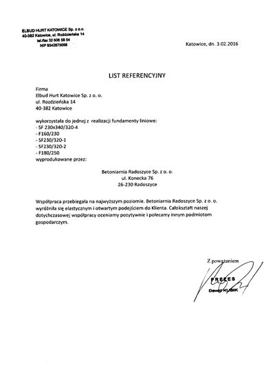 Zapraszamy serdecznie do współpracy. Gwarantujemy produkty zgodne ze specyfikacją techniczną dostarczone w wyznaczone miejsce.