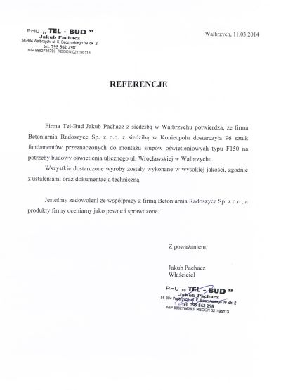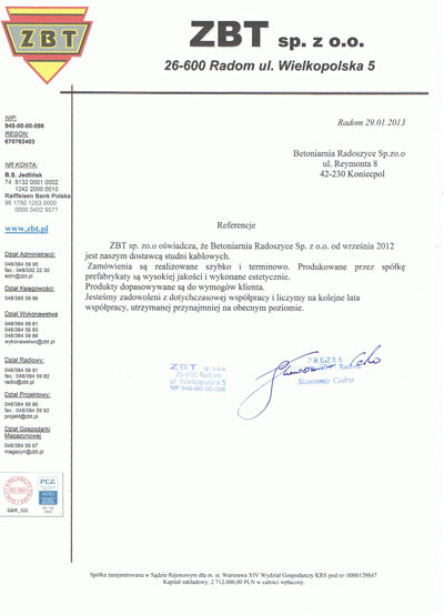 Zapraszamy do skorzystania z oferty naszej wytwórni betonu towarowego Betoniarnia Radoszyce - oferujemy szeroką gamę produktów, w tym tradycyjny beton towarowy oraz produkty specjalistyczne w tym gotowe elementy dla energetyki, teletechniki, budownictwa drogowego i ko komunalnego. Współpracujemy z firmami z całej Polski. Zapraszamy do współpracy